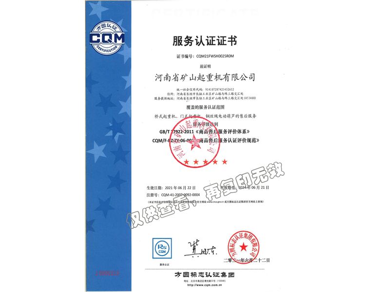 服務認證證書