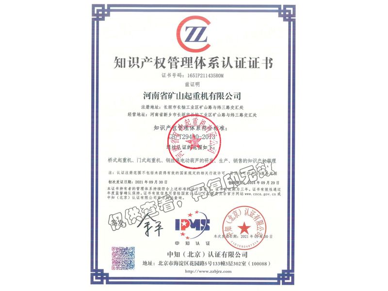 知識產權管理體系認證證書