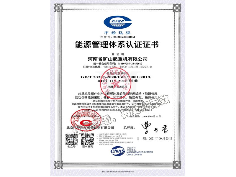 能源管理體系認證證書