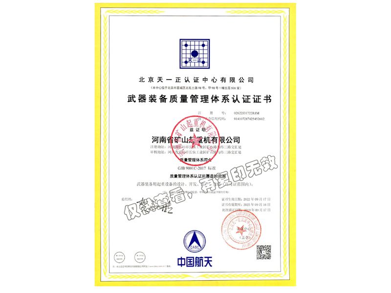 武器裝備質量管理體系認證證書